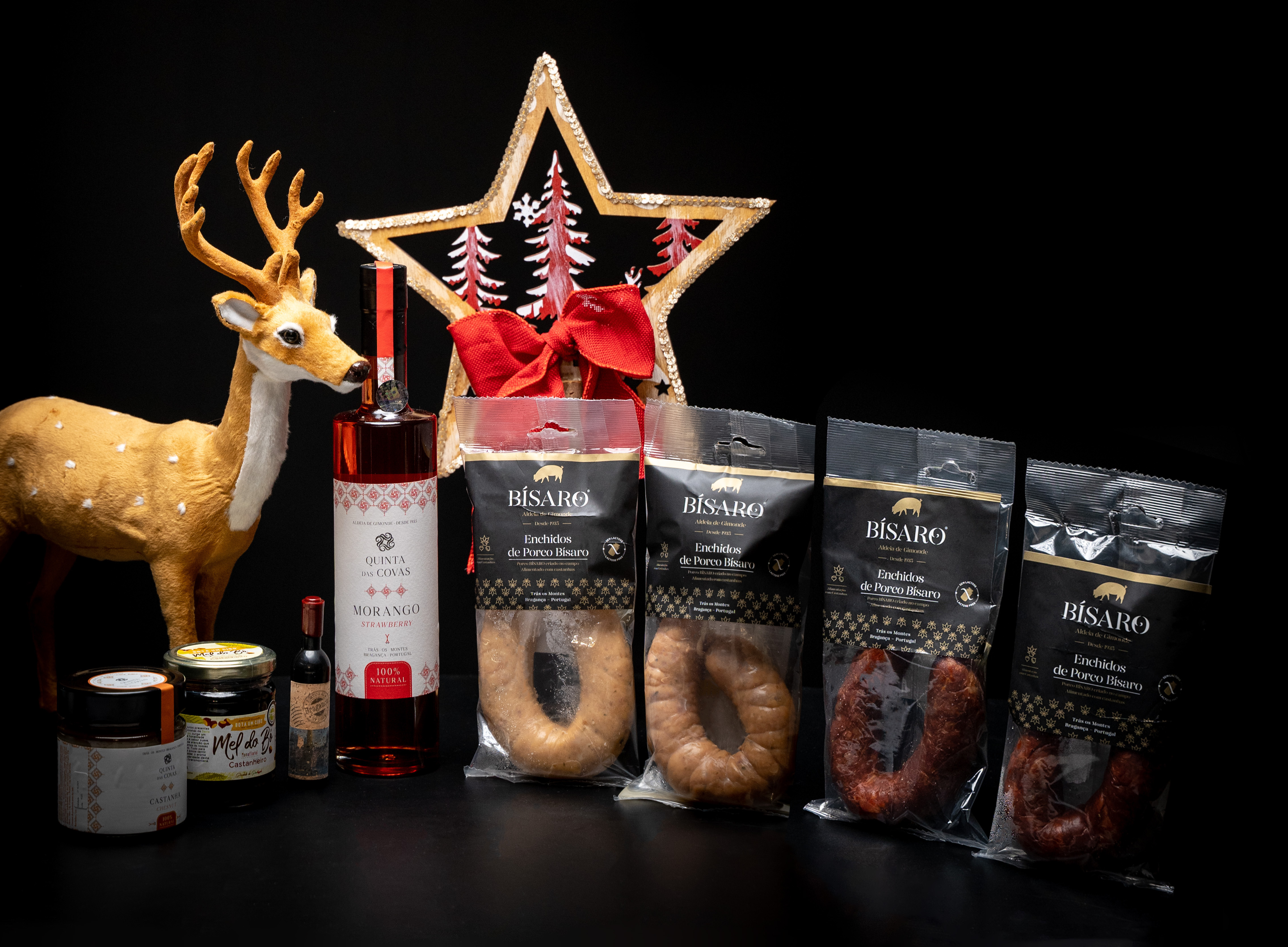 Compotas: Comporta de Morango – 51% Morango, sumo concentrado de uva, sumo de limão e gelificante; Comporta de Abóbora – 51% abóbora, sumo concentrado de uva e gelificante. Comporta de Cereja – 51% Cereja, sumo concentrado de uva, sumo de limão e gelificante. Comporta de Figo – 51% Morango, sumo concentrado de uva, sumo de limão e gelificante. Compota de Castanha – 51% Castanha, sumo concentrado de uva, sumo de limão e gelificante. Mel; Amêndoas – 1Kg;