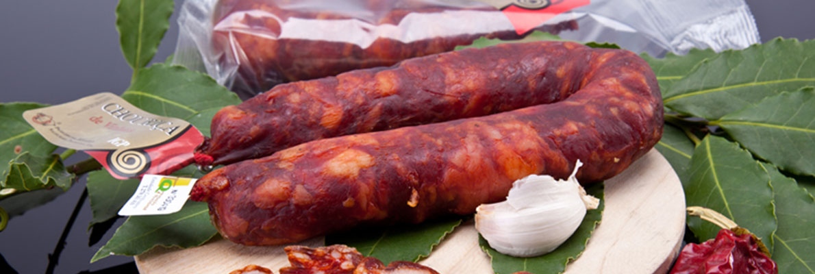 A Chouriça de Carne de Vinhais IGP é uma chouriça com 30 a 35 cm de comprimento, em forma de ferradura, feita a partir de carne e gordura de porcos de raça Bísara ou com 50% de sangue Bísaro, temperadas com sal, vinho, água, alho, colorau doce e/ou picante e louro.