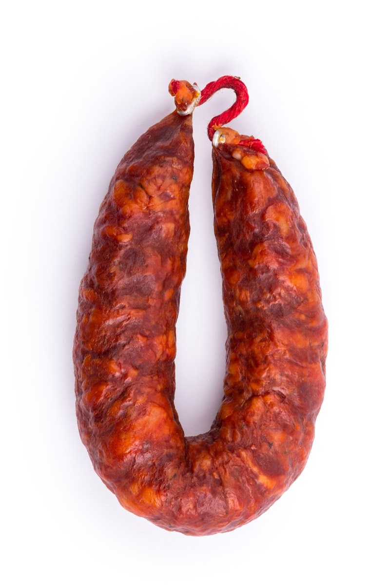 Ingredientes: Carne de Porco Bísaro, colorau, louro, alho e sal.        Cura: A chouriça de Porco Bísaro, passa por um processo de cura de alguns dias.