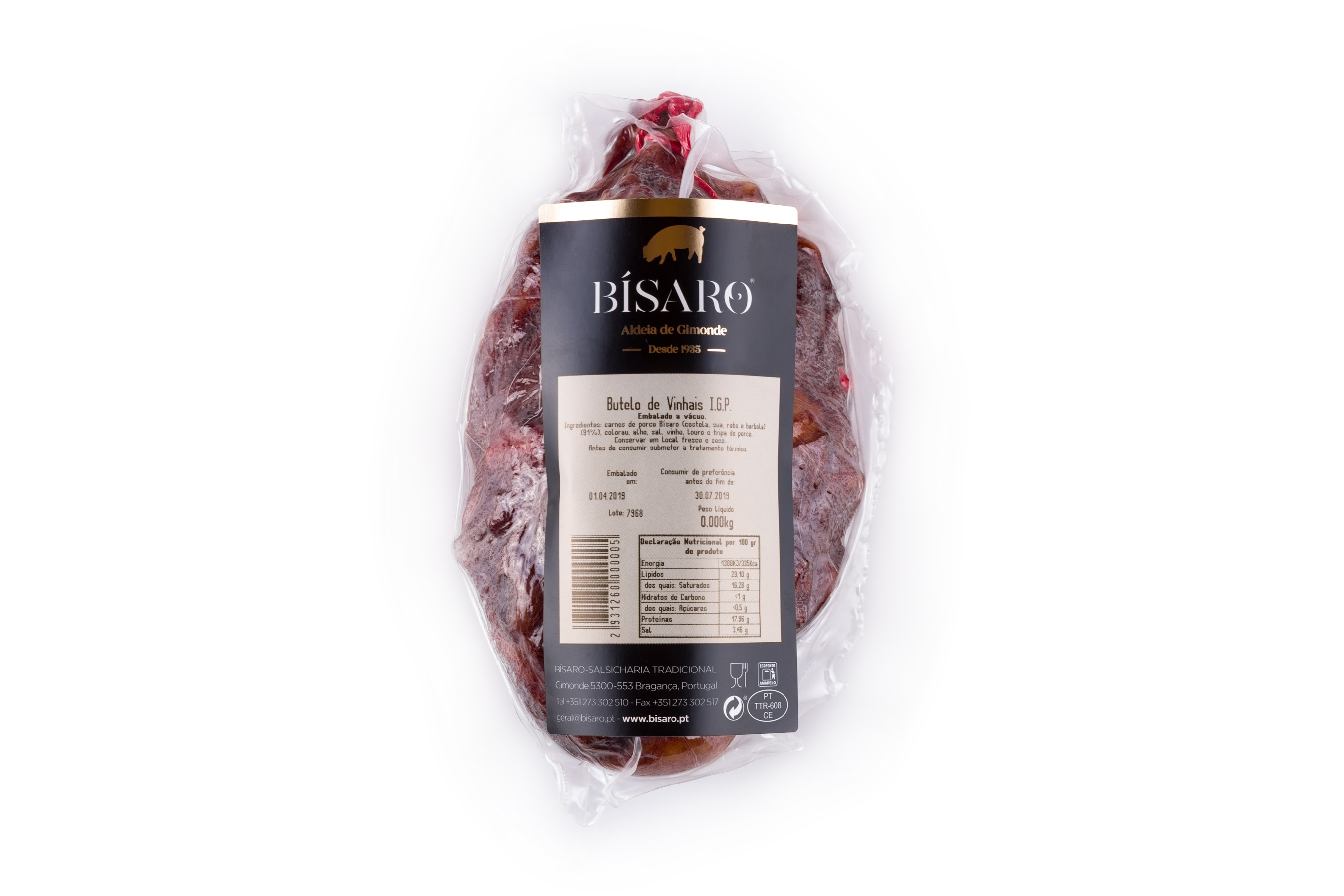 O Butelo de Vinhais IGP é um enchido produzido a partir de carne, osso e cartilagem provenientes das costelas e coluna vertebral de porcos da raça Bísara ou com 50% de sangue Bísaro.