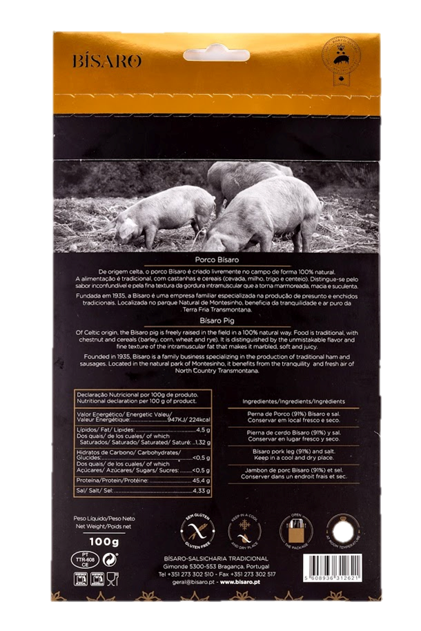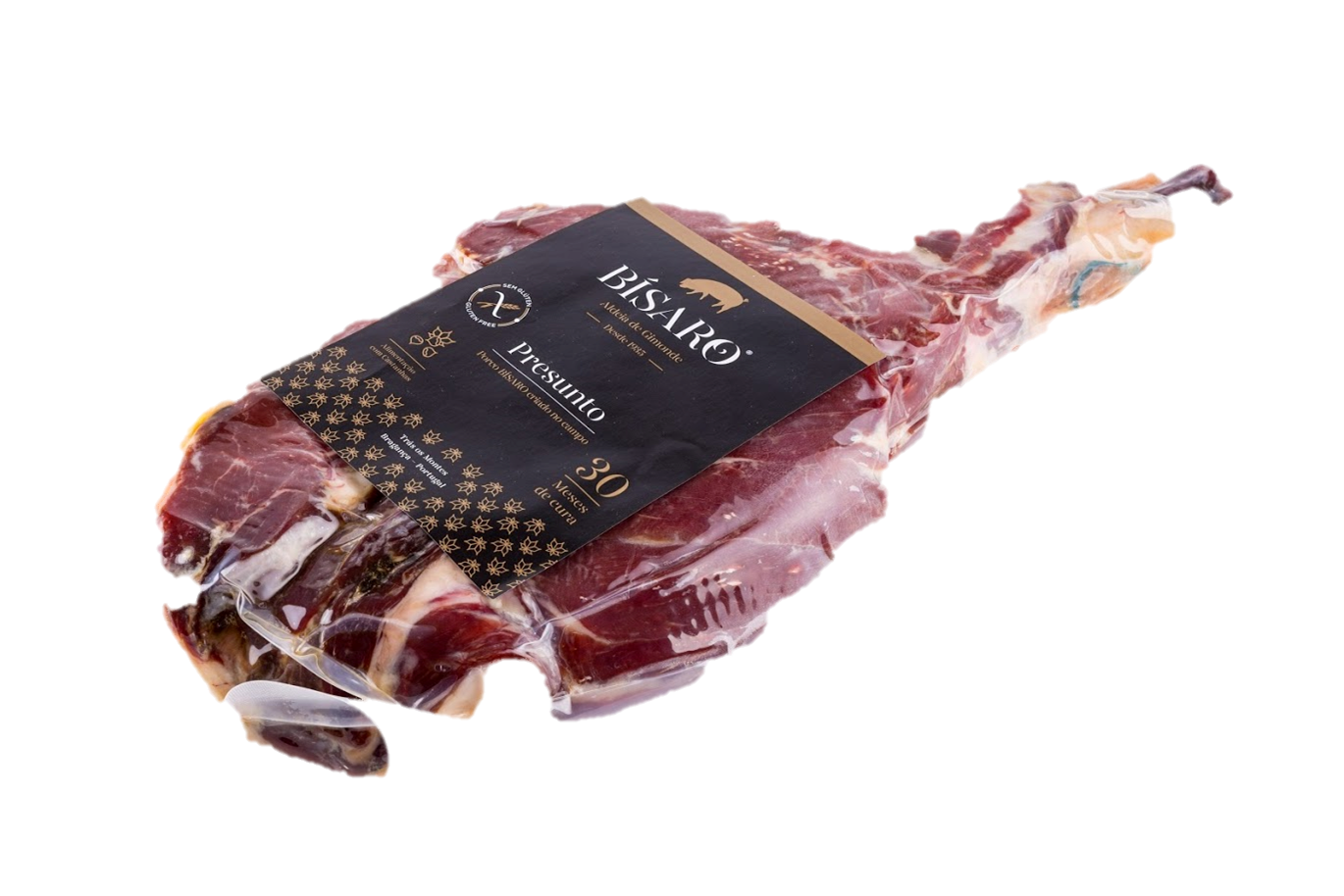 O Presunto é uma das especialidades produzidas pela Bísaro. Fruto de uma raça de características únicas, de uma criação em regime extensivo e de uma alimentação selecionada. O que resulta numa carne de elevada qualidade e proporção de gordura perfeitamente equilibrada, conferindo um aspeto marmoreado de aroma e sabor inconfundível.