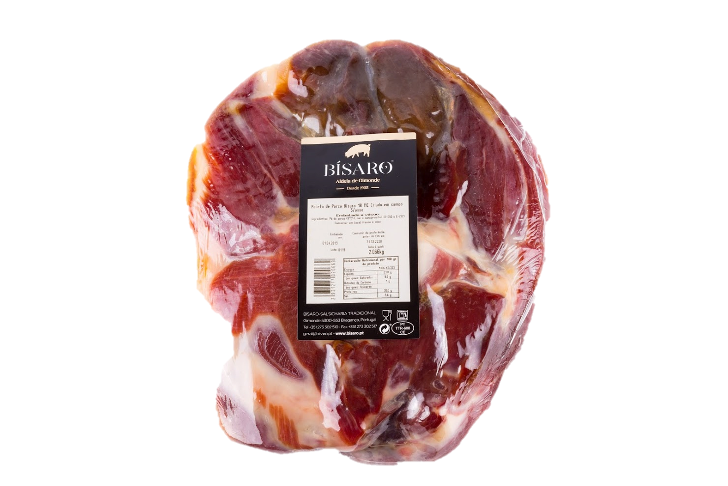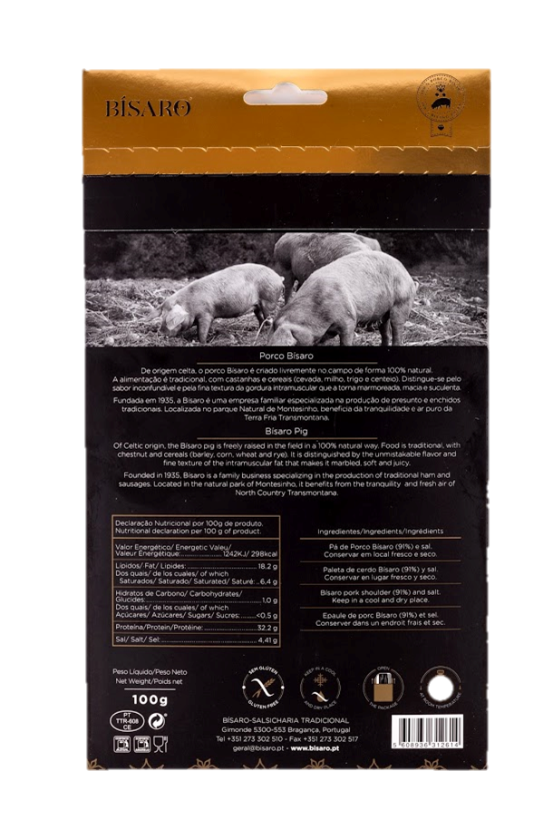 A paleta é um dos produtos de excelência produzidos pela Bísaro. Fruto de uma raça de características únicas, de uma criação em regime extensivo e de uma alimentação selecionada. O que resulta numa carne de elevada qualidade e proporção de gordura perfeitamente equilibrada, conferindo um aspeto marmoreado de aroma e sabor inconfundível.