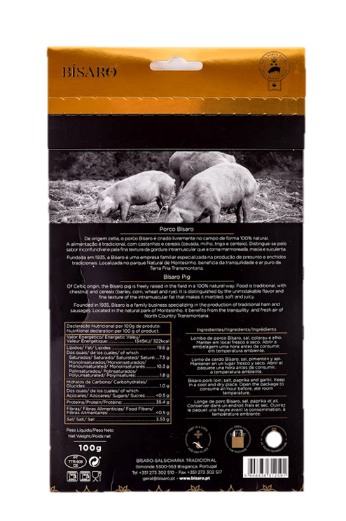 O lombo é um dos produtos de excelência produzidos pela Bísaro. Fruto de uma raça de características únicas de criação em regime extensivo e de uma alimentação selecionada. O que resulta numa carne de elevada qualidade e proporção de gordura perfeitamente equilibrada, conferindo um aspeto marmoreado de aroma e sabor inconfundíveis.