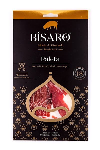 Ingredientes: Perna de Porco Bísaro (91%) e sal.                     Cura: A paleta de de Porco Bísaro Reserva, passa por um processo de cura de 18 meses.